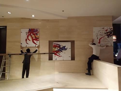This polyptych is a homage to the film The Year of the Dragon. It is the commanding piece of a three-part series. The Year of the Dragon was written by Oliver Stone who was a combat veteran in Vietnam. I have always remembered the film as being a wonderful depiction of the dichotomy between the two cultures represented in the film. It was directed by Michael Cimino, who made his directing debut in my hometown of Great Falls, Montana when he directed the film Thunderbolt and Lightfoot starring Clint Eastwood and Jeff Bridges. This film was also written by Cimino. I was in my studio in Hanoi when I was looking up something about Thunderbolt and Lightfoot because there is a scene where some kids are on bicycles and an old friend who I was chatting to mentioned that one of my other friends was in the scene. While trying to find the scene on YouTube, I came across the “Cimino Connection”. When I saw the list of films that he had directed, I saw that he had directed The Year of the Dragon. It had a special significance to me as it was showing in theatres in 1985 while I was attending the University of California at Santa Barbara.